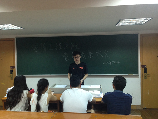 经过一年的考察和培养,电信工程学院于2015年7月1日下午4点30分在在教学楼108召开2015年上半年党员发展及转正大会。由于12级外出实习以及其他原因,实际到会党员人数42人,有表决权的党员25人,符合开会规定。列...