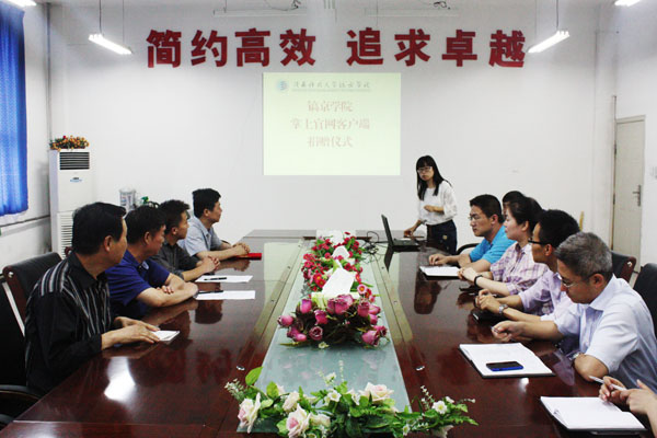 饮水思源,感恩永存,5月20日,我院2010级毕业生李树真同学回馈母校“镐京学院掌上官网”客户端捐赠仪式在会议室举行,院长贾争现教授、分党委书记张卫平、副院长南社社、经贸学院、会计学院、电信工程学院各主管院长以及李树真校友的两名留校同学焦金娟和杨婷老师参加会议,就业实训处黄翠老师主持会议。