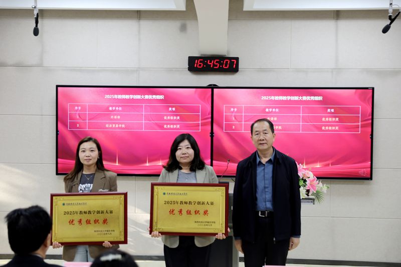 党委工作部部长薛琳宣读表彰决定。各位领导嘉宾依次为在中国国际大学生创新大赛(2025)和2025年教师教学创新大赛中获奖的师生,以及顺利完成2024年大学生创新创业训练计划的项目及优秀指导教师颁发了证书。此外,教学质量评价办公室主任赵莉与经济贸易学院院长南琳芝分别公布2025年度项目式、混合式、对分课堂三类教学示范课程的遴选结果,以及2025年大学生创新创业训练计划的立项项目。
