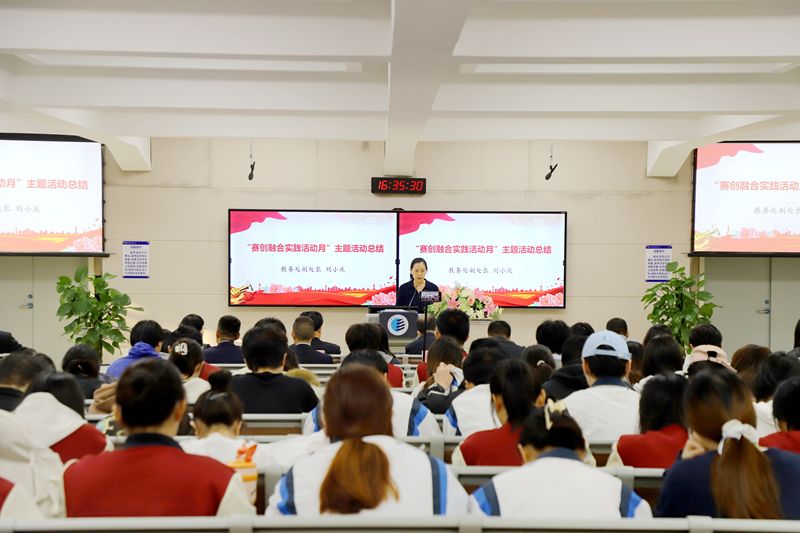 教务处副处长刘小庆对“赛创融合实践活动月”主题活动作总结发言。她系统回顾“赛创融合实践活动月”的组织实施情况与取得的丰硕成果,充分肯定师生在各类竞赛、项目实践中的积极参与与卓越表现,强调“以赛促创、以创促学”的育人理念已逐步深入人心,为学校创新创业教育注入新动能。