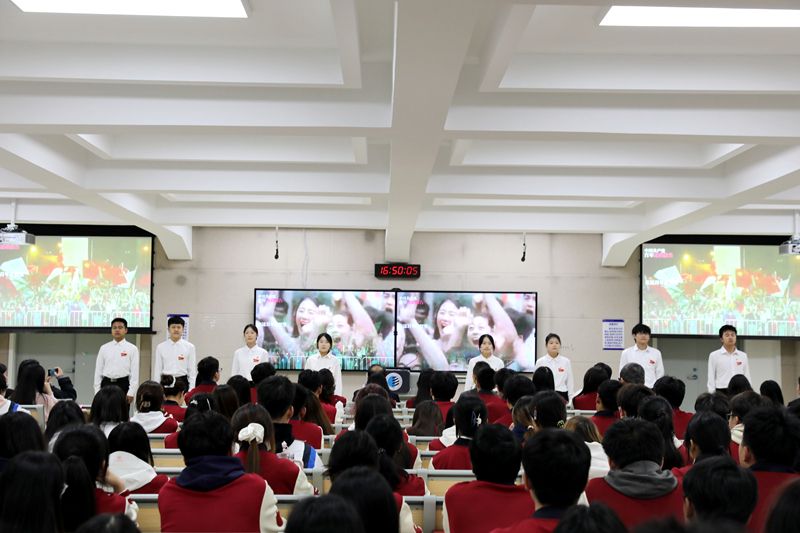 大会第二阶段在庄严的国歌声中拉开序幕。在表彰了第40期党课优秀学员后,“青春向党”大学生宣讲团宣讲员作《汲取党史智慧,砥砺青春使命》主题宣讲,阐述青年党员应从党的百年奋斗中汲取智慧,强化使命担当。