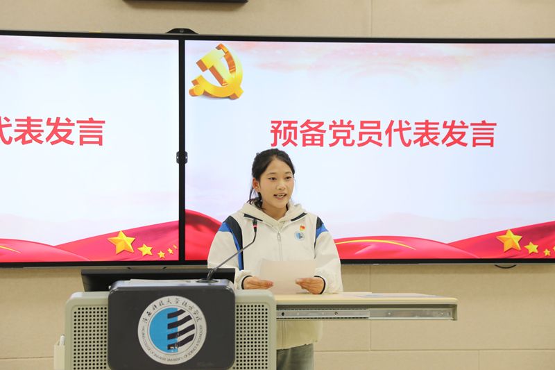 随后,会计学院学生预备党员代表闫叶彤进行发言,她表示作为一名预备党员,要把对党忠诚刻入血脉,以 “功成不必在我”的境界与 “时不我待”的紧迫感实干创新,在强国建设中书写青年担当,在大学生涯和未来人生中都能发挥模范带头作用。