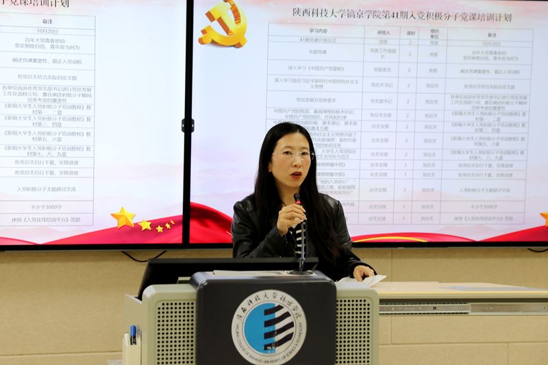 党委工作部部长薛琳从培养目标、培训任务、培训时间、培训形式及考核形式五个方面宣读了第41 期党课培训要求。她指出,入党积极分子的党课培训是党组织对入党申请人进行培养教育的必要过程。本期培训全面贯彻党的二十大和党的二十届二中、三中全会精神,不断加强理论武装,端正入党动机,明晰党员的义务和权利,明确新时期党员的标准和具体要求,使学生端正态度,勤奋学习,服务社会;教职工要积极做好本职工作,爱岗敬业,以实际行动争取早日加入党组织,为学校发展做出贡献。