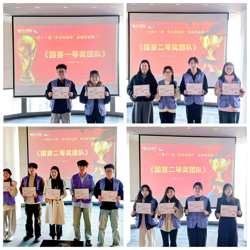 11月28日,第十一届“东方财富杯”全国大学生金融挑战赛颁奖仪式圆满落幕。此次赛事由中国青年创业就业基金会、东方财富信息股份有限公司联合主办,北京科技大学学校共青团研究中心承办,是全国大学生金融领域极具影响力的实践赛事。我校学子在赛事中表现亮眼,斩获国省两级多项大奖,获奖数量与质量均创新高,充分展现了学校在金融应用型人才培养方面的扎实成效。