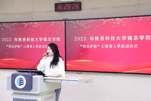 为深入贯彻落实陕西省委教育工委《关于开展第八届陕西高校“阳光护航”心理育人宣传季实践活动》(陕教工生办〔2023〕3号)文件精神,进一步提升我校心理育人工作质量,全面优化大学生积极心理素养。2023年4月3日下午,我校“阳光护航”心理育人宣传季启动仪式在教学楼223报告厅举行。出席本次启动仪式的有:陕西科技大学镐京学院党委书记、校长刘子建,学生处处长鹿龙、会计学院党总支书记王颖、计算机学院党总支书记董亚、经济贸易学院党总支书记韩雅轩、电信工程学院党总支书记常青、医药工程学院执行院长翟思程、心理咨询中心主任苏婕、学生处副处长何柏栋,以及全体辅导员和各班心理委员。本次启动仪式由心理咨询中心专职教师董婧萌主持。