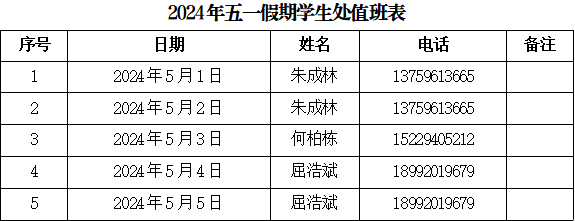 根据《国务院办公厅关于2024年部分节假日安排的通知》(国办发明电〔2023〕7号)精神,及我校关于2024年五一放假通知的工作安排,现将学生管理相关部门五一放假有关事项通知如下: