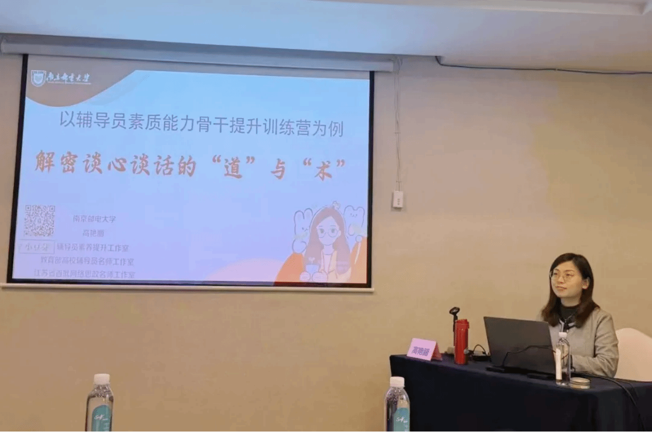 当日下午,南京邮电大学外国语学院党委副书记高艳丽,以辅导员素质能力训练营为例,解密谈心谈话的“道”与“术”,详细阐述了谈心谈话在辅导员工作中的重要性和作用,强调了它不仅是沟通的工具,更是深入了解学生、引导学生、帮助学生解决问题的重要手段。高书记还结合自己参与大赛的经历,展示了如何通过有效的谈心谈话,帮助学生解决学业、生活、情感等方面的问题,促进学生的全面发展。这些案例既有理论深度,又具实践广度,让在场的辅导员们深受启发。