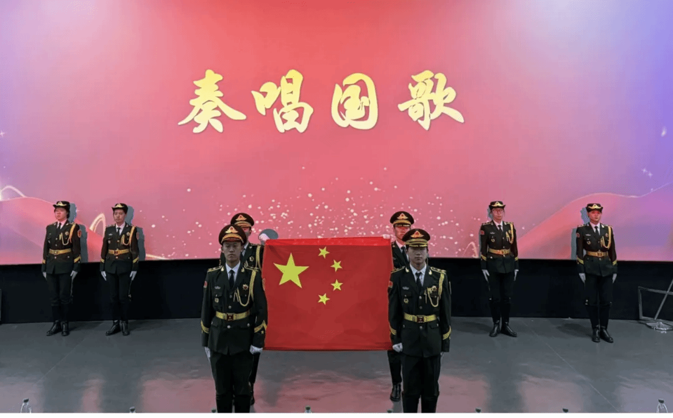 大会在庄严的国歌声中拉开帷幕,全体师生肃立齐唱,铿锵旋律激荡起现场400余名观众的热血豪情,为活动奠定爱国强军的基调。