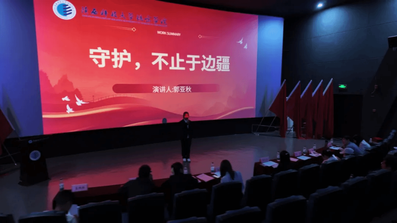 学生处副处长杨蒙蒙发表总结致辞,强调三点核心内容:一是使命高度。引用习近平总书记“强国必须强军,军强才能国安”的重要论述,指出国防教育是筑牢民族复兴根基的关键。二是青年担当。以获奖选手为例,勉励学子将个人理想融入国防事业,“无论身着迷彩还是实验服,弹道所指皆是中华”。三是行动号召。宣布学校将持续深化国防教育平台建设,推动国防宣讲团、军事实践基地等载体创新,号召全体师生做“爱我国防的播种者、强我国防的践行者”。