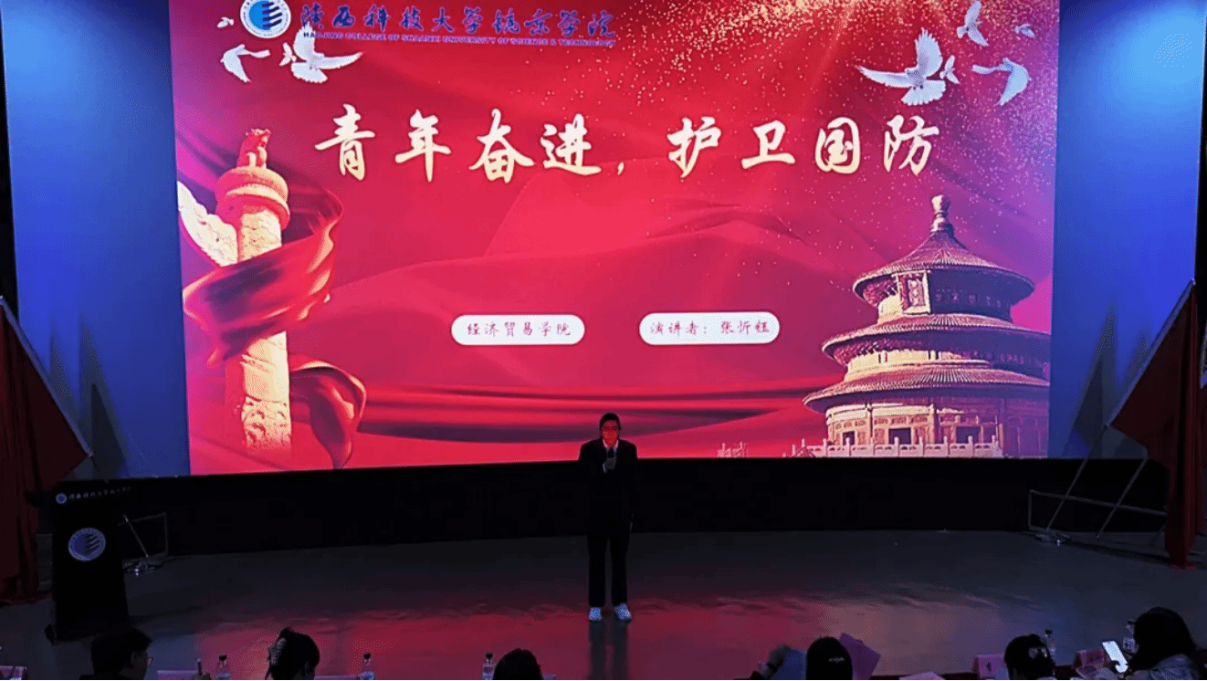 为深化国防教育、激发青年学子爱国热情,我校于2025年4月28日在实验楼木槿影院隆重举办第二届“爱我国防”演讲比赛校级决赛暨表彰大会。本次活动以“以青春之名 筑国防长城”为主题,通过演讲竞逐、艺术展演与荣誉表彰,展现新时代青年心系国防、担当使命的精神风貌。