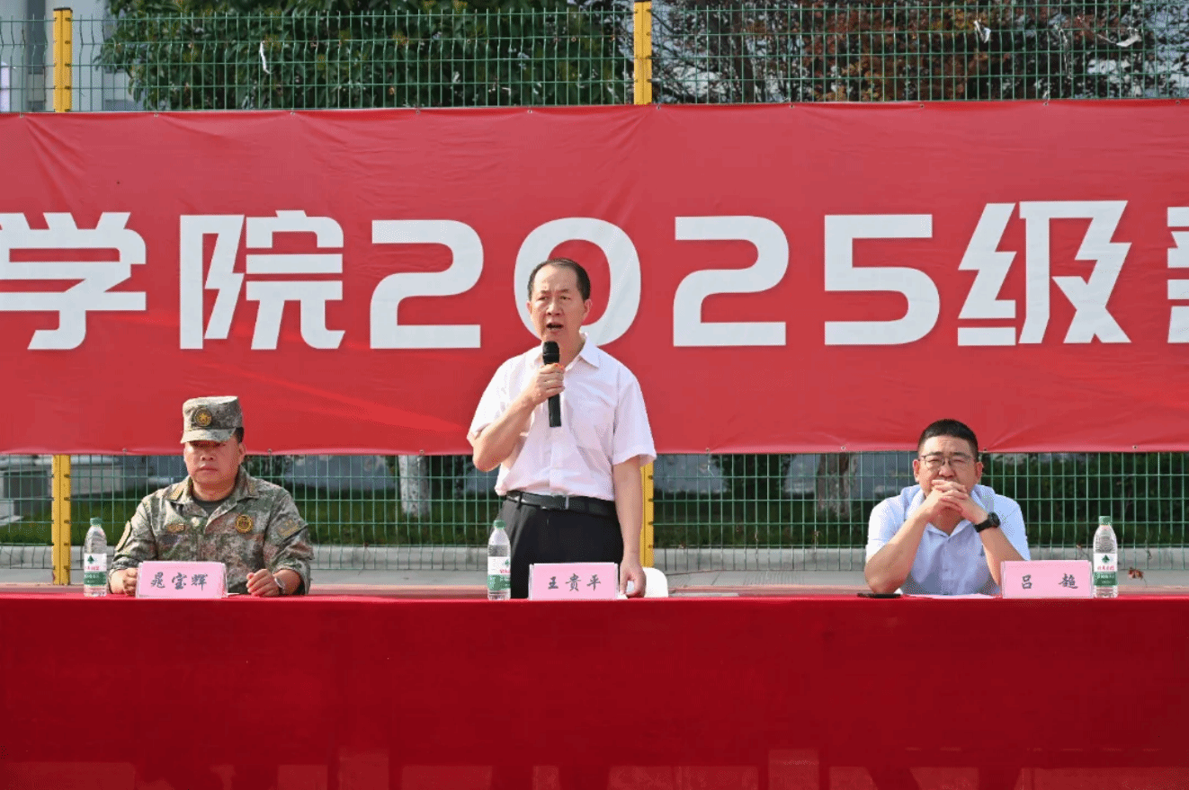 八月金秋,丹桂飘香。8月27日上午,陕西科技大学镐京学院2025级新生军训开训动员大会在田径场正式拉开帷幕。党委书记王贵平,校长助理、学生处处长吕超,陕西新拓军研拓展训练基地主任晁宝辉,我校各职能部门、二级学院负责人出席大会。本次大会由团委书记韩家鸿主持。