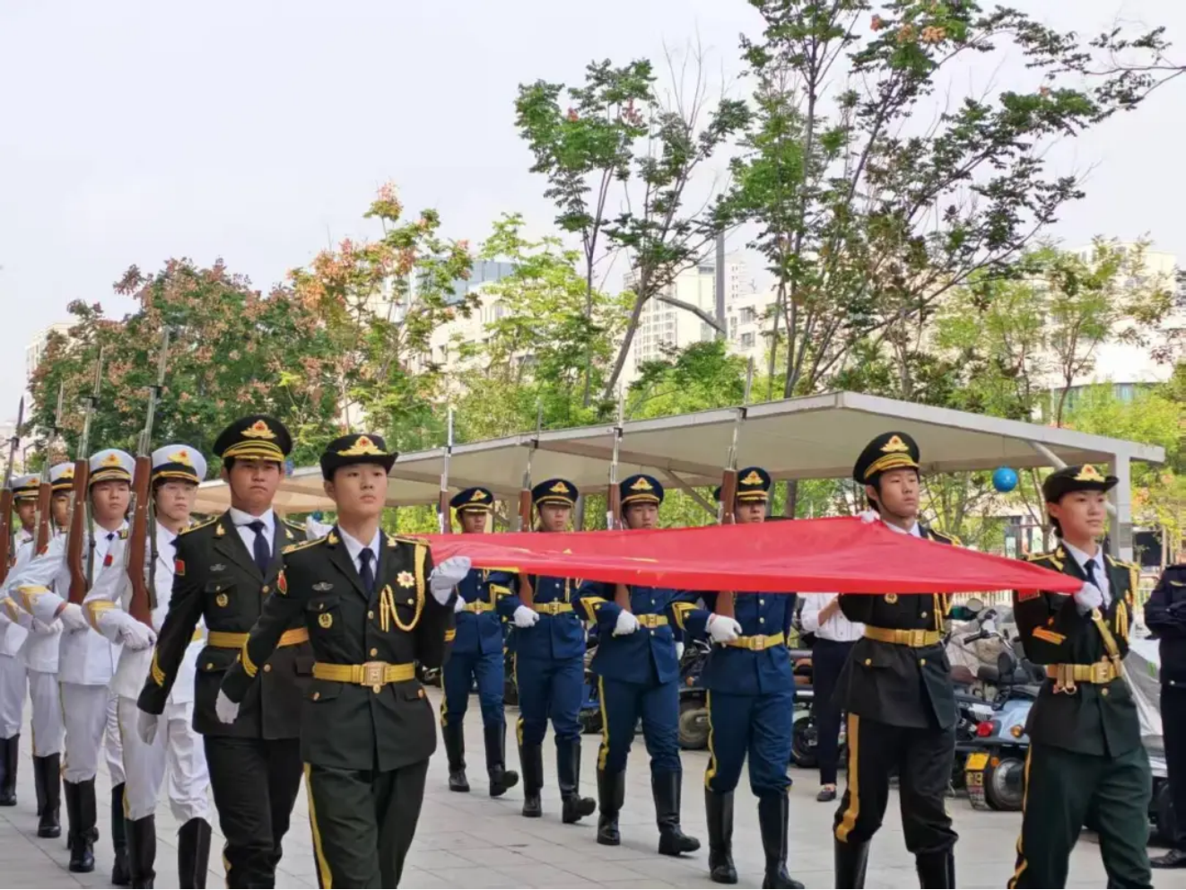 在中华人民共和国成立76周年之际,龙台观路社区精心策划"党建引领新征程,朴邻共庆中国心"国庆庆典活动。9月29日上午,特别邀请我校国旗护卫队到场执行出旗任务。