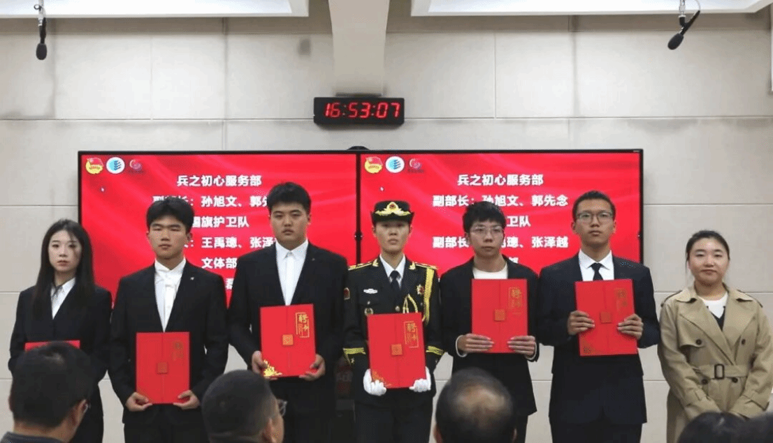 团委书记韩家鸿为兵之初心服务部、国旗护卫队、文体部副部长颁发聘书