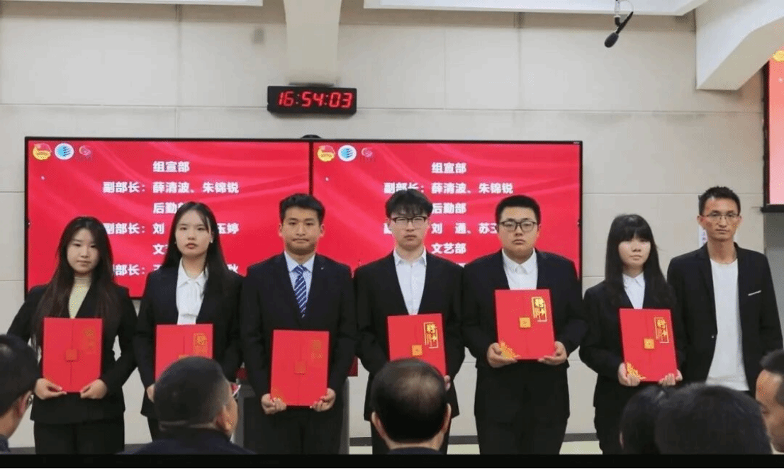 学生处副处长何柏栋为组宣部、文艺部、后勤部副部长颁发聘书