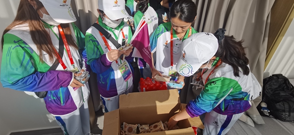 9月20日中秋佳节前夕,我校53名十四运“小秦宝”坚守岗位,陕西科技大学镐京学院团委书记薛琳老师来到运动员中心酒店和美丽豪酒店看望刚刚服务结束的志愿者们,并为他们提前度过了一个特殊的中秋佳节。