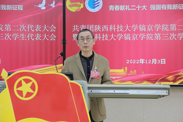 大会第四项:陕西科技大学镐京学院党委书记刘子建做重要讲话。刘子建书记首先代表大会主席团向出席大会来宾、全体代表,及全校青年致以亲切的慰问和美好的祝愿,他讲出我校以及我校团学组织在这五年中不断创新、提升。刘子建书记指出我们镐京的青年尤其是共青团干部青年不能丢掉自己的本色和天赋,要有做党和国家的建设者,要具有接班人的勇气和志气。随后,刘书记带领我们认真学习了习近平总书记的系列讲话精神并对镐京的青年提出四点希望。最后,刘书记对我校的团委、学生会和各级学生组织以及各位代表、全校青年作出要求,希望我们在波澜壮阔的新时代可以实现我们的人生价值!