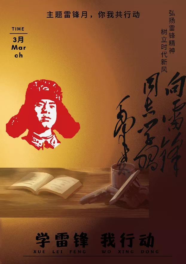 今年的3月5日,是第60个“学雷锋纪念日”,也是第24个“中国青年志愿服务日”。今年也是学习贯彻党的二十大精神开局之年,是全面建设社会主义现代化国家新征程起步之年,雷锋精神在新的时代背景下焕发出新的生机与活力。我们要学习习近平总书记对深入开展学雷锋活动作出的重要指示精神,深刻把握雷锋精神的时代内涵与实践要求,要瞄准国家发展的需求、汇聚信念的力量、以大爱的胸怀和进取的锐气做一个热心人、好心人,真正“把青春奉献给祖国”。
