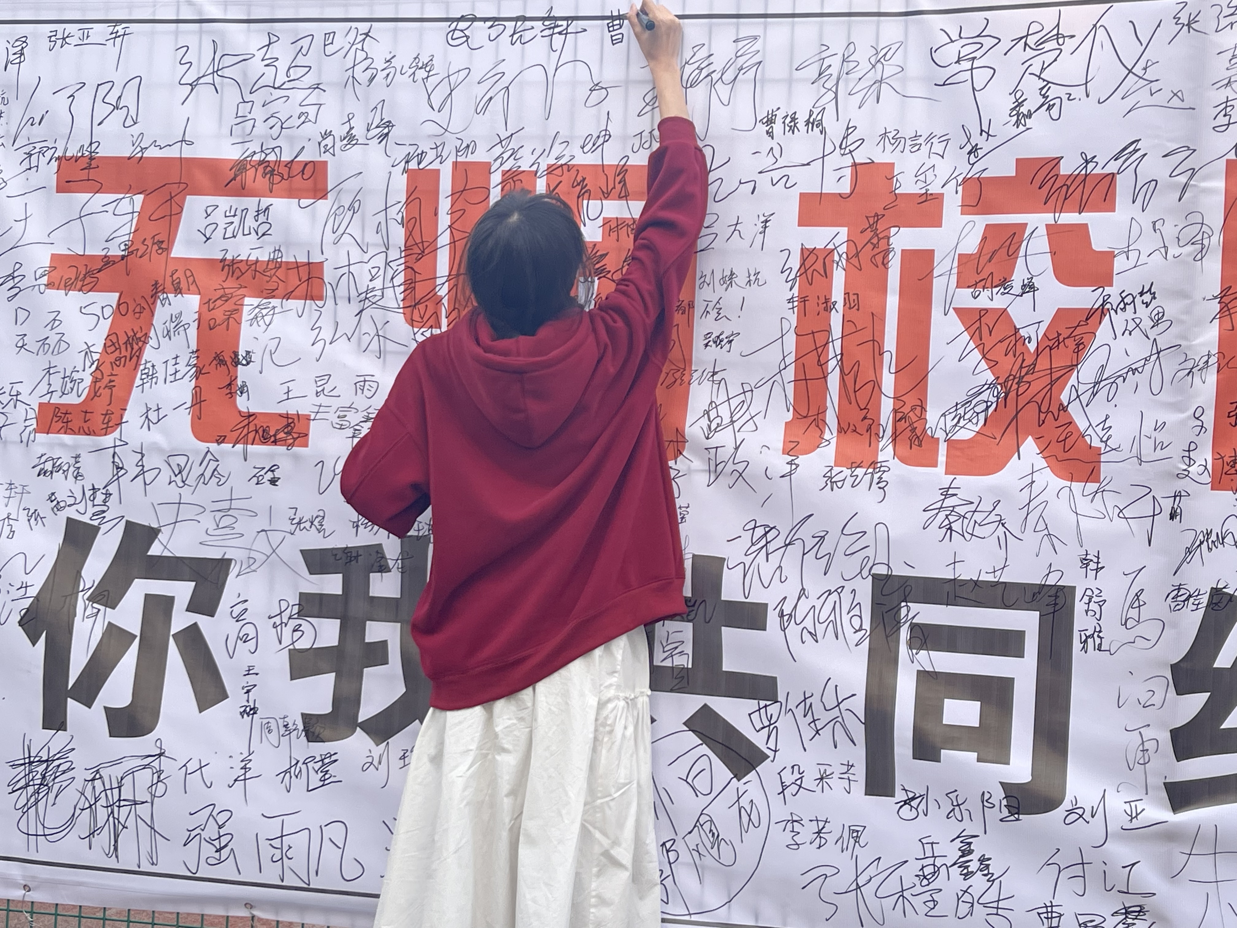 活动期间,来往的同学们纷纷驻足,在签名墙上郑重地签下了自己的名字,同时承诺拒吸第一支烟,从我做起,做宣传戒烟的文明使者。